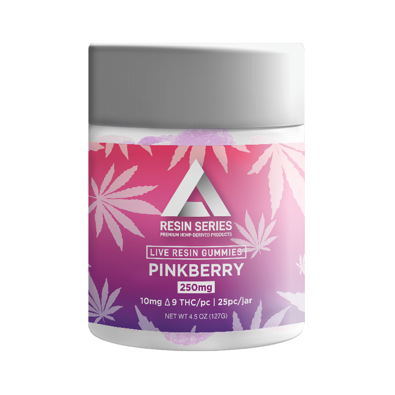 Our Pinkberry Live Resin Delta-9 THC Gummies are Hemp derived using less than 0.3% of Live Resin Delta-9 THC. We use just enough Delta-9 THC in order to produce that familiar feeling that you’ll love and enjoy. Also, our Pinkberry Live Resin Gummies feature 10mg of Delta 9 THC per piece which total 250mg per jar.