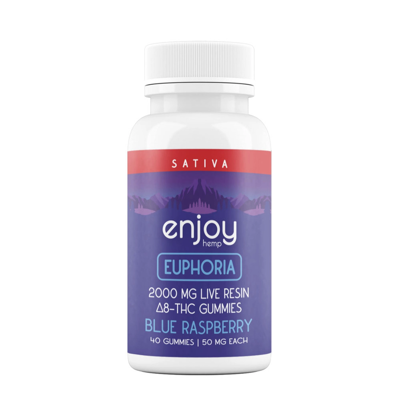 Enjoy Hemp Live Resin Euphoria Delta 8 THC Gummies (Sativa-Infused Blue Raspberry) - 2000 mg Total (50 mg Each | 40 Gummies)